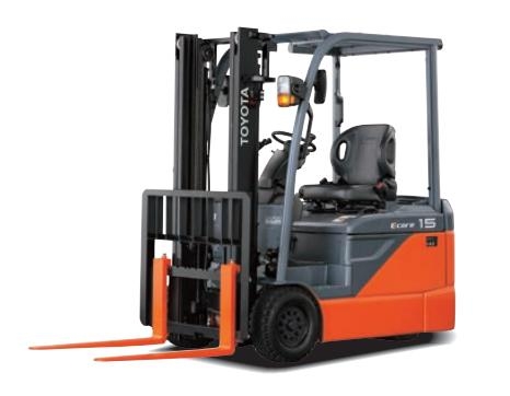 Toyota 8FBE15 2 tấn kiểu 3 bánh ngồi lái, góc quay nhỏ có thể dễ dàng làm việc trong kho hàng chật hẹp. Thông số kỹ thuật chính của xe tải trọng nâng: 2tấn,tầm nâng 500mm động cơ: Điện